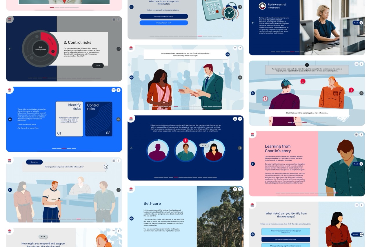 Most of the educational content on sexual harassment prevention we found focused heavily on legislation, policy and risk management, and not enough on the human experience of being involved in cases of sexual harassment in the workplace – both as the person affected and as the person responding to the disclosure. Additionally, the Respect@Work Positive Duty was only introduced at the end of 2022, so there was a real need for contemporary content that aligned with the new legislation.